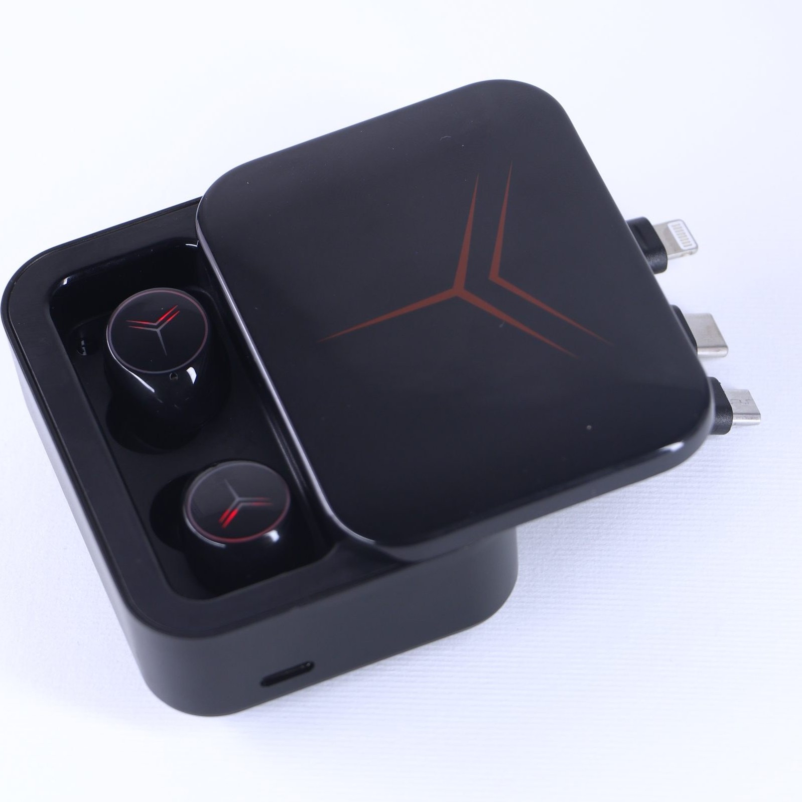 خاصیت پاوربانک و همراه داشتن سه کابل رابط Lightening(Iphone)-USB Type C و Micro USB در محفظه کشویی دستگاه